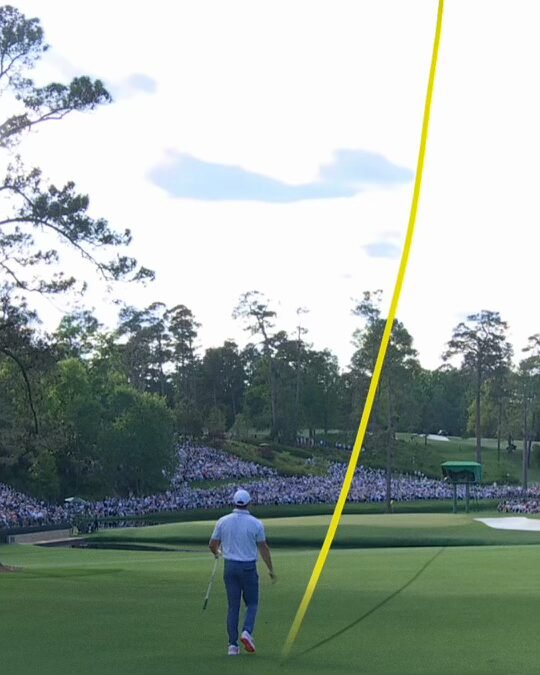 Hole 11 is where things started to get interesting, as the leaders entered into the heart of the famous Amen Corner. After Bryson put his second shot into the water – effectively ending his hopes of a green jacket, Rory gave us our first real scare. His punch-out from the trees caught the slopes short of the green and stopped just inches shy of rolling into the same pond that had claimed Bryson’s ball, just as it had claimed the dreams of so many aspiring champions through the years. Rory would escape with a bogey, but it still felt like the largest crisis had been averted on the second shot.
