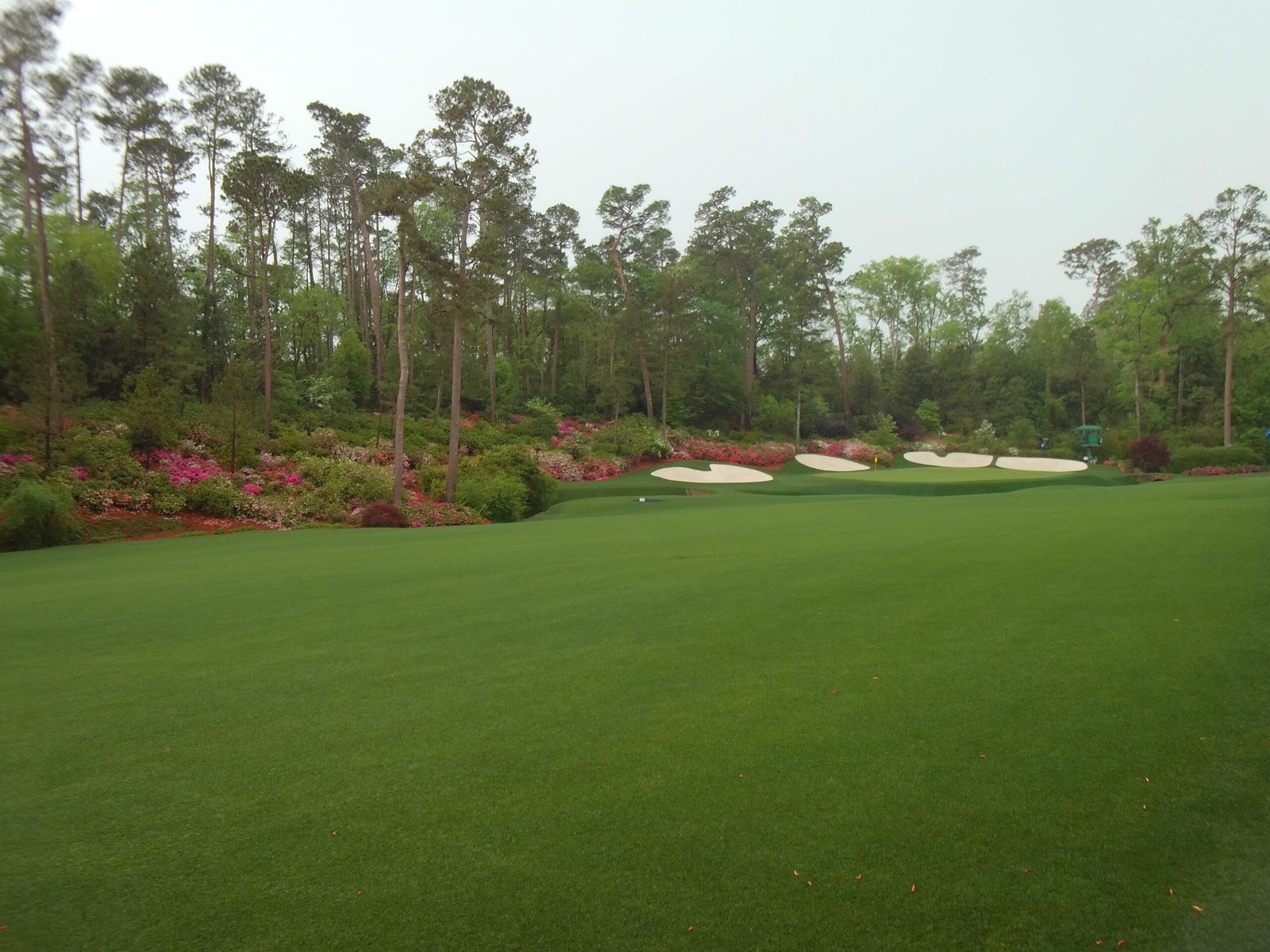 The most poignant and moving moment of the day came while walking down the 11th fairway as the famed Amen Corner came into view. The site of so many Masters heroics and heartbreaks and one of the best stages in sports for creating drama that keeps us holding our breaths with each swing of the club and stroke of the putter. I took a seat in the grandstand to soak it all in. Of the few groups out practicing that day in the rain I was lucky to be able to see their tee shots into 12 and the internal calculations and angst it can produce in even the most brave players. The backdrop of Amen Corner is without a doubt the most beautiful scene in all of sports, with eye popping azaleas blooming as far as the eye can see all the way down to the iconic 13th green.